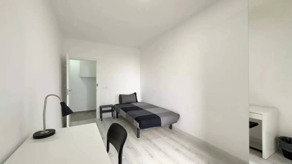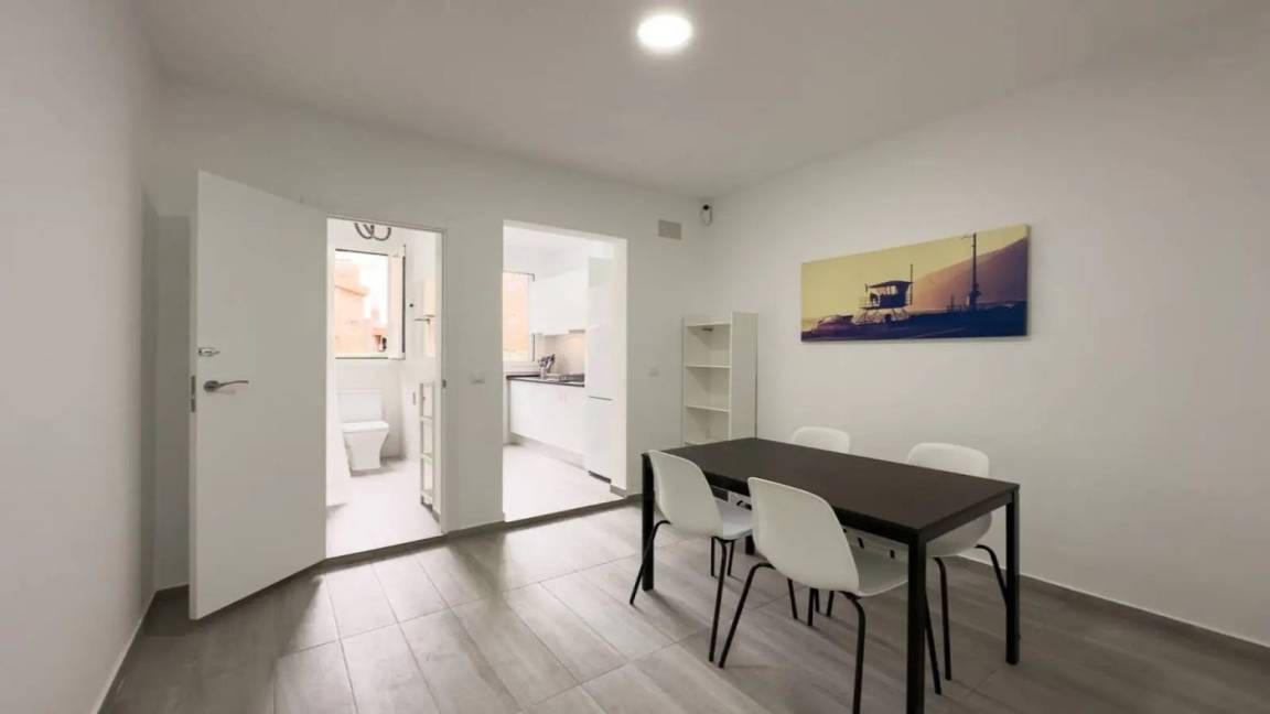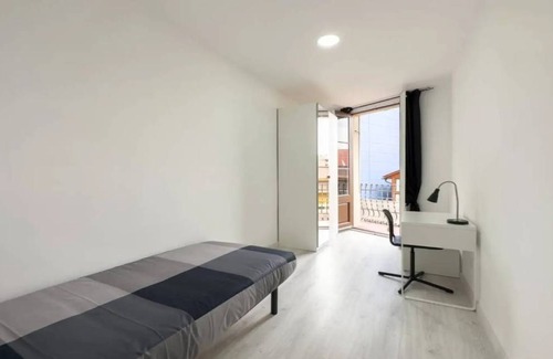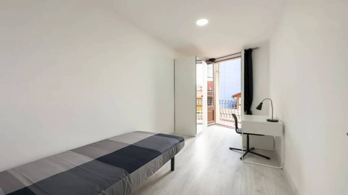 The recently renovated apartment on Carrer de Sant Roc offers rooms for rent. It is located on the third floor. Our furnished apartments include a kitchen with basic appliances (fridge, washing machine, microwave; no oven) and bedrooms with a bed, desk, closet, lockable door, 1 set of sheets, duvet, pillow, fan, and electric heater. All apartments have Wi-Fi, and the buildings do not have elevators. Payment methods accepted are bank transfer, cash (in-office), or card (in-office).