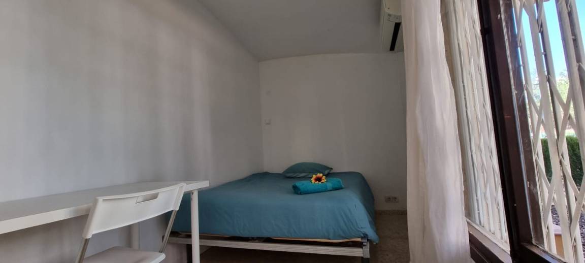 The space boasts an astonishing traditional design. The interiors have a bright and full light, giving the space an alluring energy. This listing is a room in a shared apartment that requires a minimum stay of 6 months or more. This private room is readily available for you. This room is situated in an 85-square-meter apartment on the ground floor. You have access to a garden from all sides of the property. Additionally, this property is situated in a private community and this means that the surrounding area of the apartment is very quiet. The property has a total of 4 bedrooms, a bathroom, and a maximum capacity of 4 people. Internet connection, individual electric heating, and a fully equipped kitchen (fridge, oven, microwave ) are all included in the rental price and are at your disposal. Your private room is furnished with a double bed, a built-in wardrobe, a desk, a set of bedding, and a window overlooking the very quiet street.