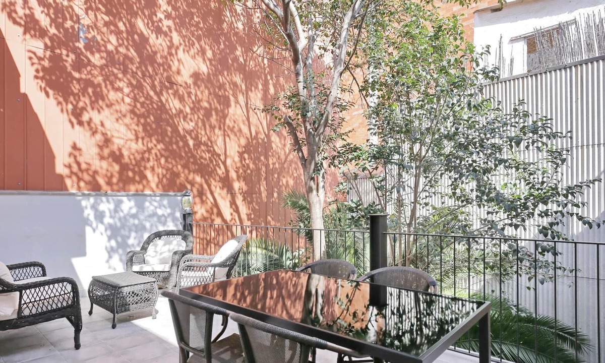 Beautiful apartment of 2 bedrooms with a very large terrace of 25m2 located in a quiet area between Camp Nou stadium, Sants train station and the congress center la Fira Barcelona.