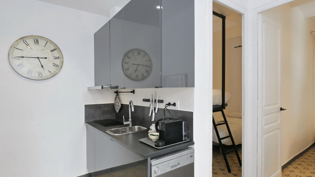 Completely renovated in 2020 this apartment is tastefully decorated. It consists of a living / dining room including a sofa, a Smart TV screen (Netflix) and a table for having breakfasts and meals. It has a balcony.