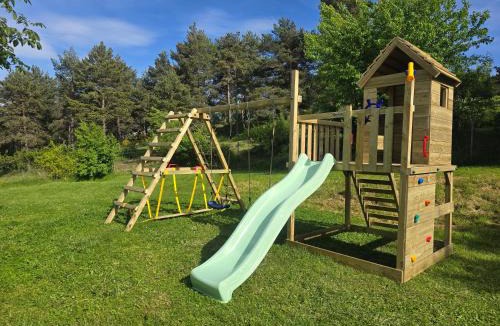 Media & TechnologyDVD player, TVBathroomPrivate bathroom, Bathtub or shower, Toilet paper, Hairdryer, Toilet, Shared bathroom, TowelsKitchenDishwasher, Stovetop, Cleaning products, Coffee machine, Oven, Kitchen, Toaster, Microwave, Refrigerator, Washing machine, High chair, KitchenwareLiving AreaSitting area, Fireplace, SofaGeneralSoundproof, Private entrance, Heating, Fire extinguisherBedroomLinens, Wardrobe or closet, Childrens' cribsOutdoorsBarbecueViewGarden view, Landmark view, Mountain viewEntertainment & Family ServicesBaby safety gatesPool and SpaShallow end, Saltwater poolRoom AmenitiesSocket near the bed, Non-feather pillow |