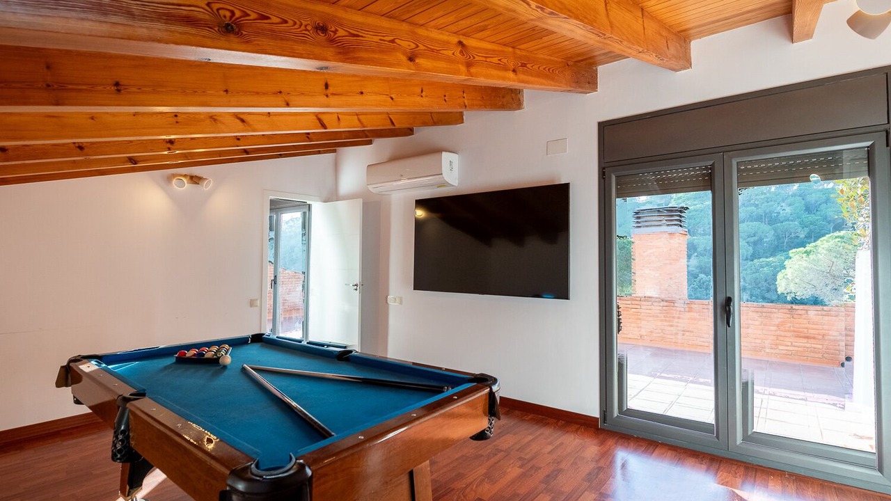 The house has billiards, outdoor ping pong table, air conditioning. The kitchen is very spacious and is fully equipped with oven, microwave, fridge, freezer among other things, also has a large table in the kitchen and in the dining room. The Villa has a capacity for ten-twelve people, with 5 bedrooms ( 4 of them are suite ) , 5 bathrooms and 1 bathroom with shower outside.