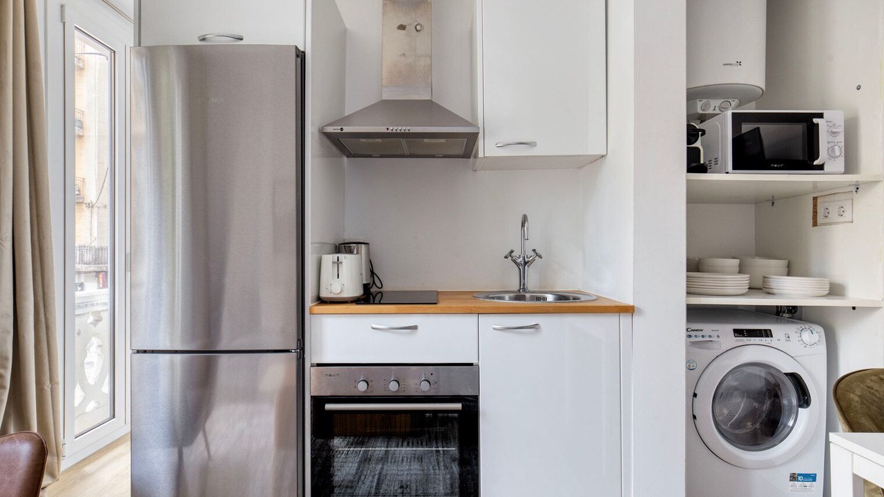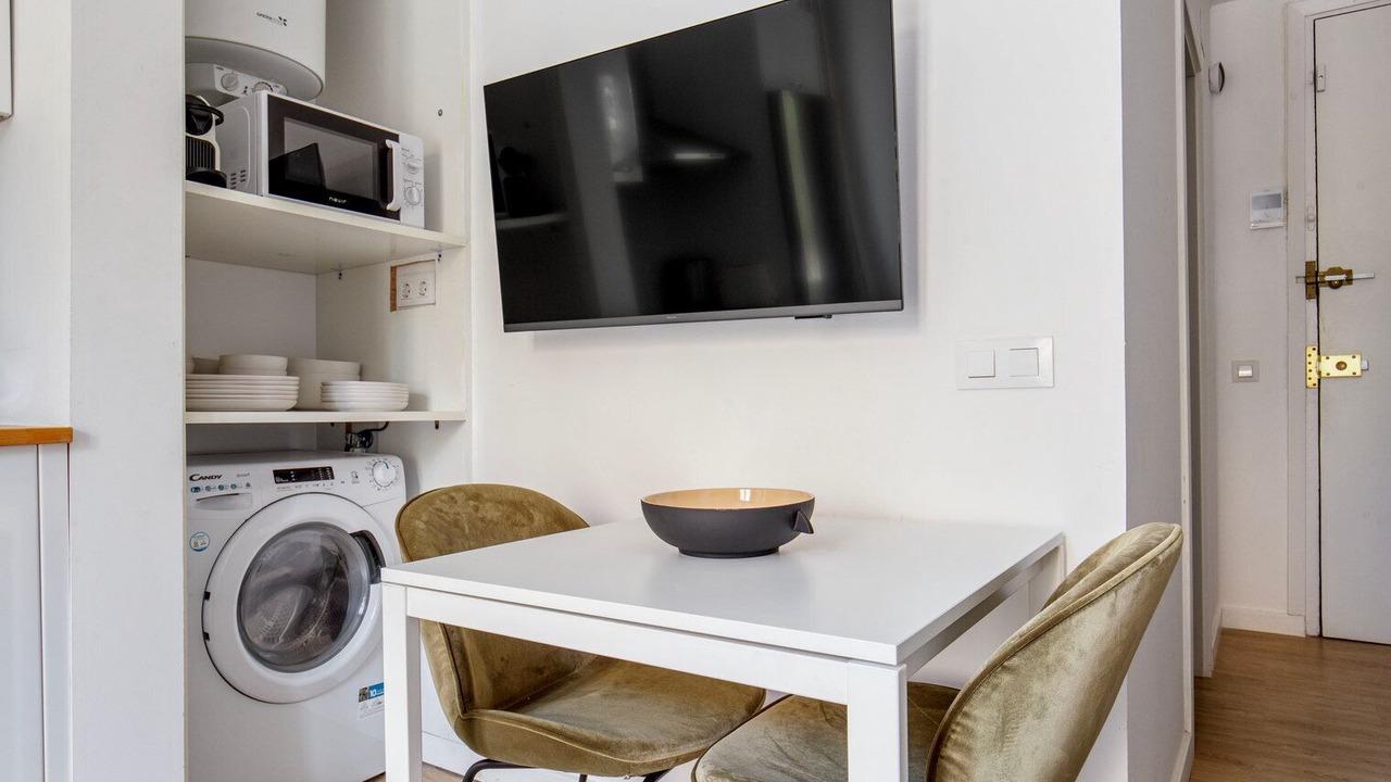 Thoughtfully designed with bespoke finishes, modern furnishings, and a fully equipped kitchen, you’ll enjoy that “I’m home” feeling with this Blueground apartment. Whether you’re lounging in your bright living room streaming the latest and greatest entertainment on the smart TV or premium wireless speaker, or getting some well-earned rest on the superior quality mattress with luxury linens, you’ll fall in love with everything this Sagrada Família apartment has to offer. This apartment also offers in-apartment laundry.