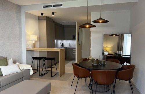 The apartment is designed with an 'open plan' lounge/diner/kitchen providing ample space to move around and relax comfortably. The house has been completely renovated (2023) and offers an elegant, modern and harmonious decoration. It has 3 bedrooms (one double with a 160cm/Queen-sizebed), another double with two single beds and the third bedroom with a single bed. In the living room there is a sofa bed to accommodate another two people, being able to accommodate up to 7 people comfortably in the house. There are also 2 spacious bathrooms and modern walk-in showers, easily accessible from all rooms. One of the bathrooms is 'in-suite' with the master bedroom with the queen size bed. The living room has a 65' SMART TV and free high-speed Wi-Fi.